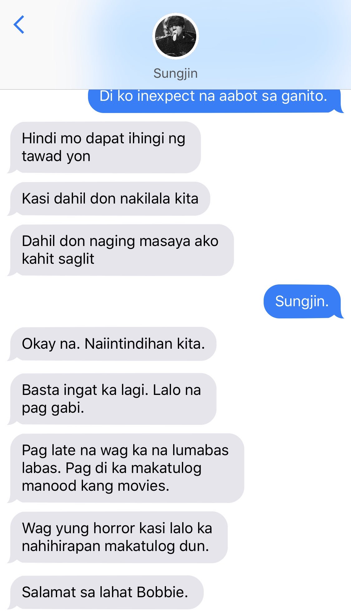 I gotchu salamat at nakilala kita. Sabi mo babalik ka. May mga araw na ako din ay anlulungkot kahit pa tayo naHindi dahil may ginawa ka pero naqpapaisip lang talaga ako kung karapatdapat ba talaga ako sa isang katulad mo.