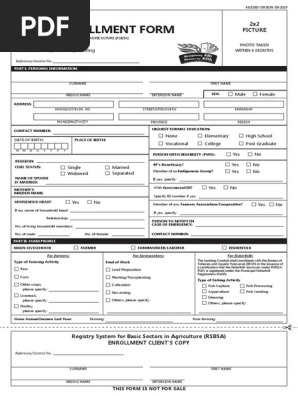 Ani At Kita Rsbsa Enrollment Form Pdf Farms Livestock